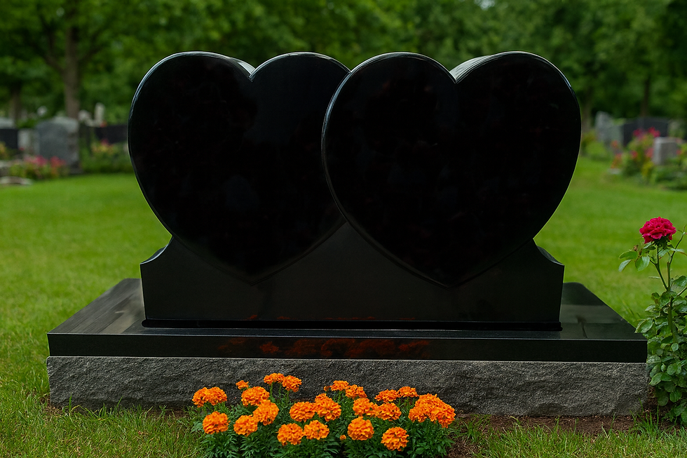 Black Granite Polished Double Heart Monument Headstone with Base MN-299