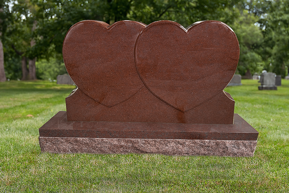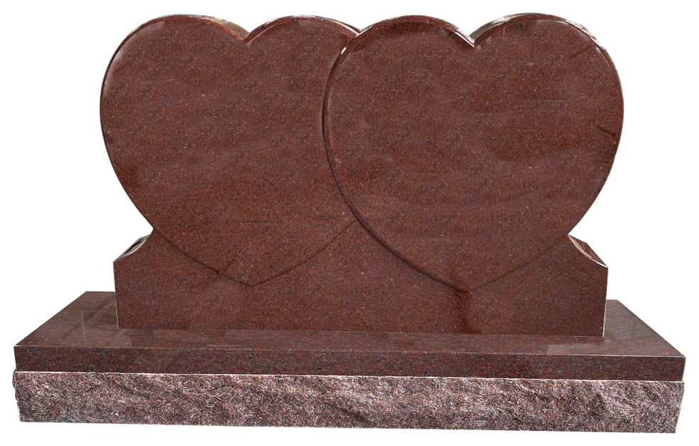 Red Granite Polished Double Heart Monument Headstone with Base MN-300