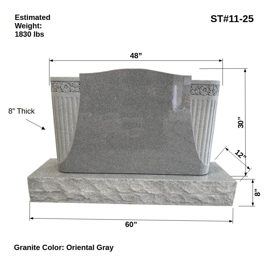 Gray Granite Serpentine Monument (48x30x8) Headstone with Base MN-307